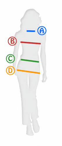 - Pecho - Medida B: situe la cinta métrica sobre la parte más ancha del pecho. (*)